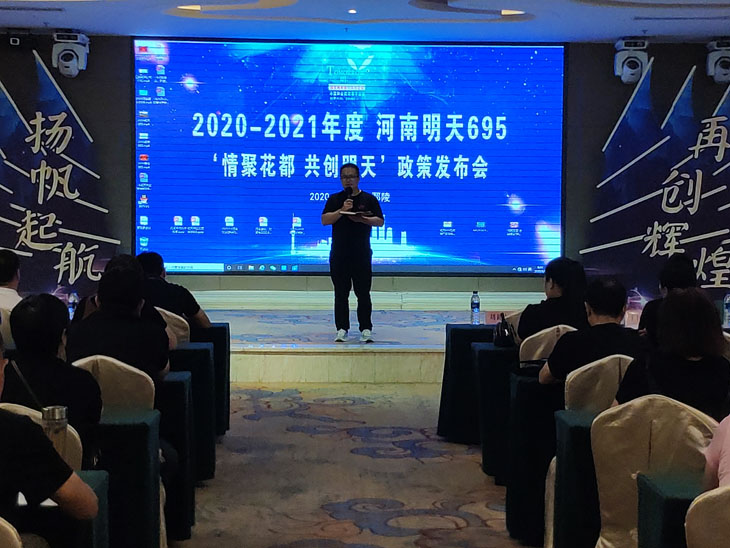 會上,由河南明天總經理劉路坡向河南的合作伙伴們隆重的詳細發布2020-2021年度的營銷政策。