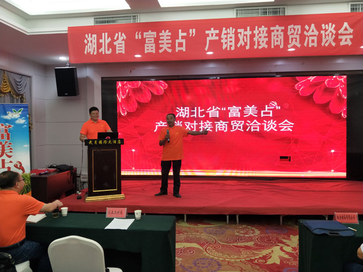 2020年9月15-16日,湖北?。ǘ鯑|南地區)“富美占”產銷對接商貿洽談會在湖北省武穴市召開。武穴市農業農村局領導,武穴市糧食儲備有限公司領導、武穴市隆旺合作社負責人、江蘇明天種業科技股份有限公司代表、武穴市金磊糧油/武穴市嘉欣米業/武穴市勝斌米業等多家米企負責人以及經銷商、種田大戶嘉賓150余人蒞臨本次會議。