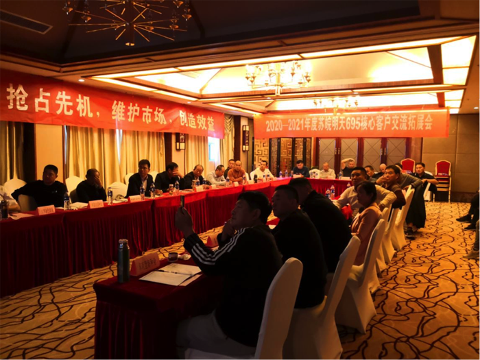 2020年是一個(gè)大災(zāi)之年,但是明天695憑借著優(yōu)異的表現(xiàn),在逆境中乘風(fēng)破浪,逆勢(shì)起航,在黃淮海區(qū)域得到了廣泛的贊同和認(rèn)可。于是在農(nóng)忙結(jié)束之際,蘇皖明天團(tuán)隊(duì)為了維護(hù)明天695市場(chǎng)的穩(wěn)定運(yùn)行,迅速邀請(qǐng)明天695核心客戶召開交流會(huì),本次會(huì)議中蘇皖共計(jì)40位客戶出席并進(jìn)行指導(dǎo)工作。