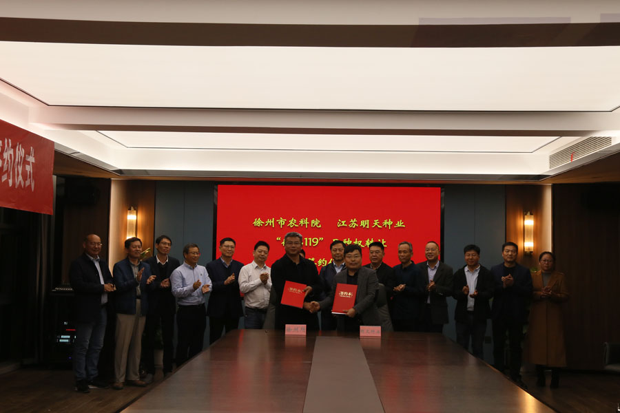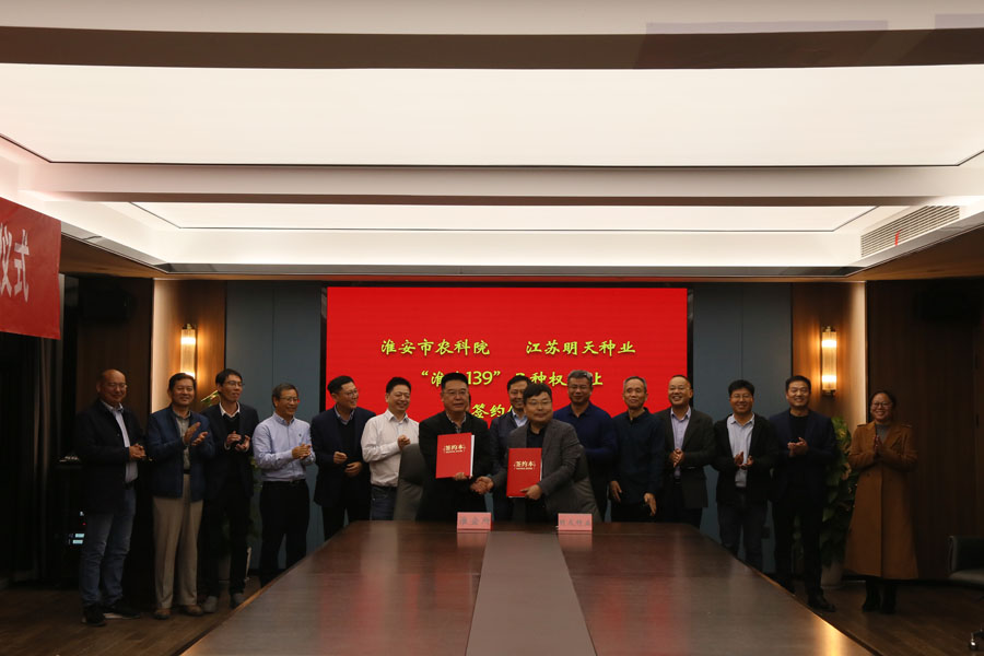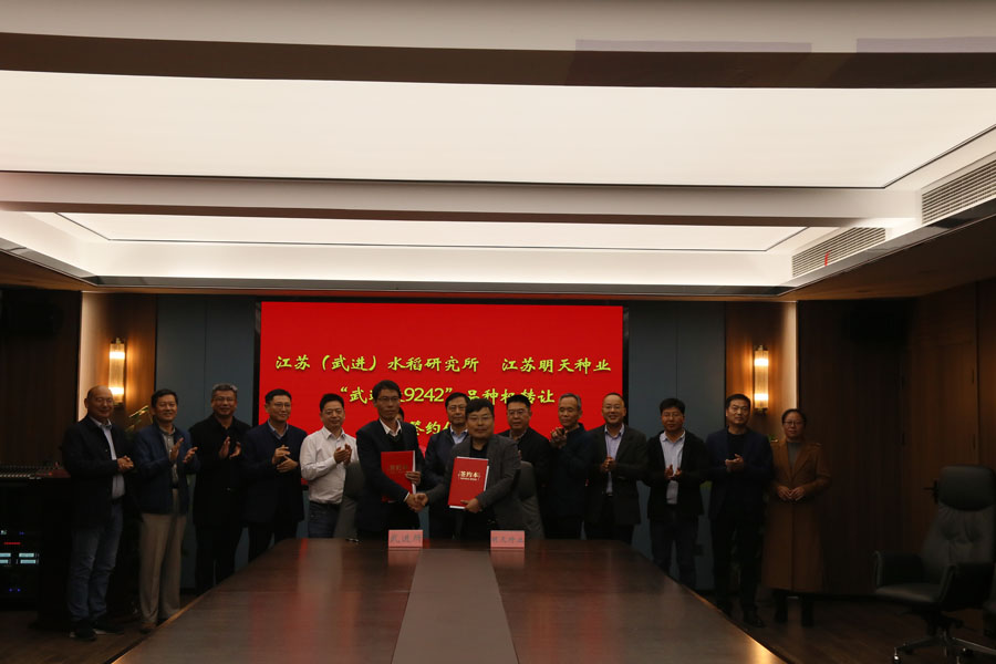 11月25日下午,江蘇明天種業(yè)與淮安市農(nóng)科院、徐州市農(nóng)科院、江蘇(武進(jìn))水稻研究所在公司會(huì)議室,就“淮麥139”、“徐稻119”、“武運(yùn)粳9242”隆重舉行轉(zhuǎn)讓簽約儀式。江蘇明天種業(yè)成功簽約以上三個(gè)品種全國(guó)獨(dú)占實(shí)施許可經(jīng)營(yíng)權(quán)。江蘇省農(nóng)業(yè)農(nóng)村廳、江蘇省農(nóng)業(yè)科學(xué)院、淮安市農(nóng)業(yè)科學(xué)院、徐州市農(nóng)業(yè)科學(xué)院、江蘇(武進(jìn))水稻研究所等領(lǐng)導(dǎo)、專家到會(huì)見(jiàn)證。會(huì)議由江蘇明天種業(yè)科技股份有限公司嚴(yán)輝民總經(jīng)理主持。 簽約儀式上,育種團(tuán)隊(duì)代表淮安市農(nóng)科院楊子博主任、徐州市農(nóng)科院胡婷婷主任、武進(jìn)所朱邦輝副所長(zhǎng)分別就三個(gè)品種的育種思路及品種特性做了詳細(xì)的介紹;明天種業(yè)經(jīng)營(yíng)團(tuán)隊(duì)介紹了目前三個(gè)品種的試驗(yàn)示范情況以及品種的精準(zhǔn)定位和推廣思路,并表示與育種團(tuán)隊(duì)共同做大做強(qiáng)三個(gè)品種的決心。 淮安市農(nóng)科院彭杰書(shū)記、徐州市農(nóng)科院楊峰副院長(zhǎng)、武進(jìn)所徐玉峰所長(zhǎng)分別對(duì)明天種業(yè)團(tuán)隊(duì)給予高度贊揚(yáng),表示品種能簽約明天種業(yè)很是放心,此前明天種業(yè)與三家單位已有深厚的合作基礎(chǔ),成功建立了良好的合作模式,相信此次合作在目前種業(yè)大環(huán)境下將產(chǎn)生里程碑的意義。 與會(huì)的江蘇省農(nóng)科院劉賢金副院長(zhǎng)、江蘇省農(nóng)業(yè)農(nóng)村廳種業(yè)管理處馬愛(ài)京處長(zhǎng)、種子管理站何金龍站長(zhǎng)、南繁南鑒站許明站長(zhǎng)分別對(duì)三個(gè)品種的合作表示祝賀,也表示根據(jù)中央一號(hào)文件中提出的全面實(shí)施種業(yè)振興、加快打造種業(yè)振興骨干力量的要求,明天種業(yè)作為農(nóng)業(yè)農(nóng)村部遴選的國(guó)家種業(yè)陣型企業(yè)應(yīng)有所擔(dān)當(dāng),將以此次科企合作作為新的起點(diǎn),創(chuàng)新思路,大膽開(kāi)拓,引領(lǐng)江蘇種業(yè)邁入更高的臺(tái)階。 江蘇省農(nóng)業(yè)農(nóng)村廳俞衛(wèi)東二級(jí)巡視員對(duì)此次合作雙方表示祝賀,對(duì)科企合作的模式給予充分肯定,并指出江蘇省農(nóng)業(yè)農(nóng)村廳種業(yè)處、種子管理站及南繁南鑒站作為種子服務(wù)部門(mén),應(yīng)加強(qiáng)服務(wù)意識(shí),聯(lián)合更多省內(nèi)科研和企業(yè)力量,將此合作模式在省內(nèi)大力推廣,同時(shí)勉勵(lì)明天種業(yè)要與育種單位,要共同對(duì)這些好品種研究配套的高產(chǎn)優(yōu)質(zhì)栽培方法;要結(jié)合推廣部門(mén)建好高產(chǎn)示范方,盡快加大推廣力度。推動(dòng)江蘇稻麥產(chǎn)業(yè)的發(fā)展,共同為保障江蘇及國(guó)家糧食安全、農(nóng)民增收作出貢獻(xiàn)。 淮安市農(nóng)業(yè)科學(xué)院顧正中研究員、江蘇(武進(jìn))水稻研究所徐曉杰書(shū)記、江蘇明天種業(yè)科技股份有限公司副總經(jīng)理王波、徐江、師洪飛、總經(jīng)理助理韓國(guó)標(biāo)等相關(guān)領(lǐng)導(dǎo)、專家參加此次會(huì)議。
